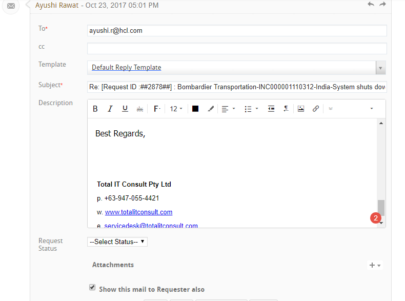 Note: If there is a file attachment on the ticket request, download, drag and drop the files in the attachment field.